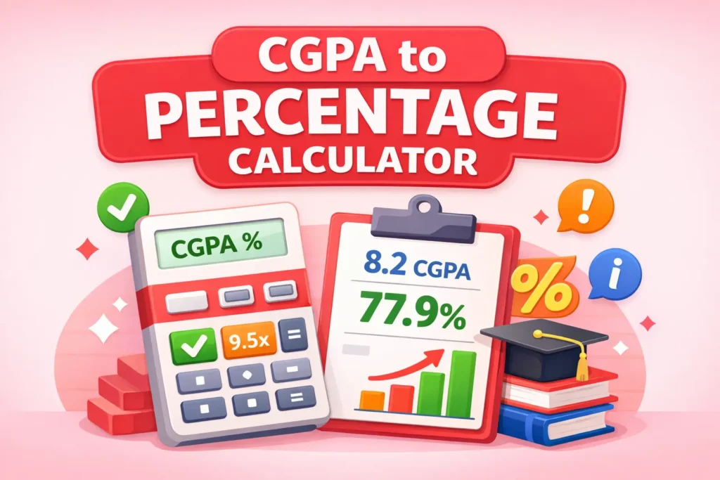 This cgpa percentage calculator online work for different grading system and help students understand their academic performance in percentage form.You do not need to calculate manually.Just enter your CGPA and the tool will show the result immediately.